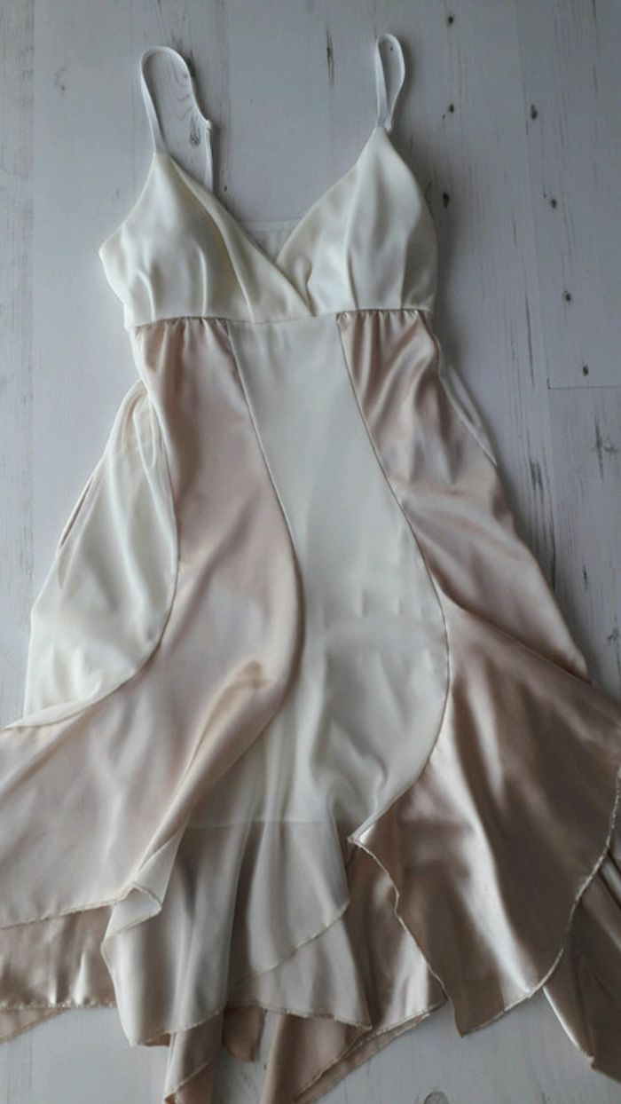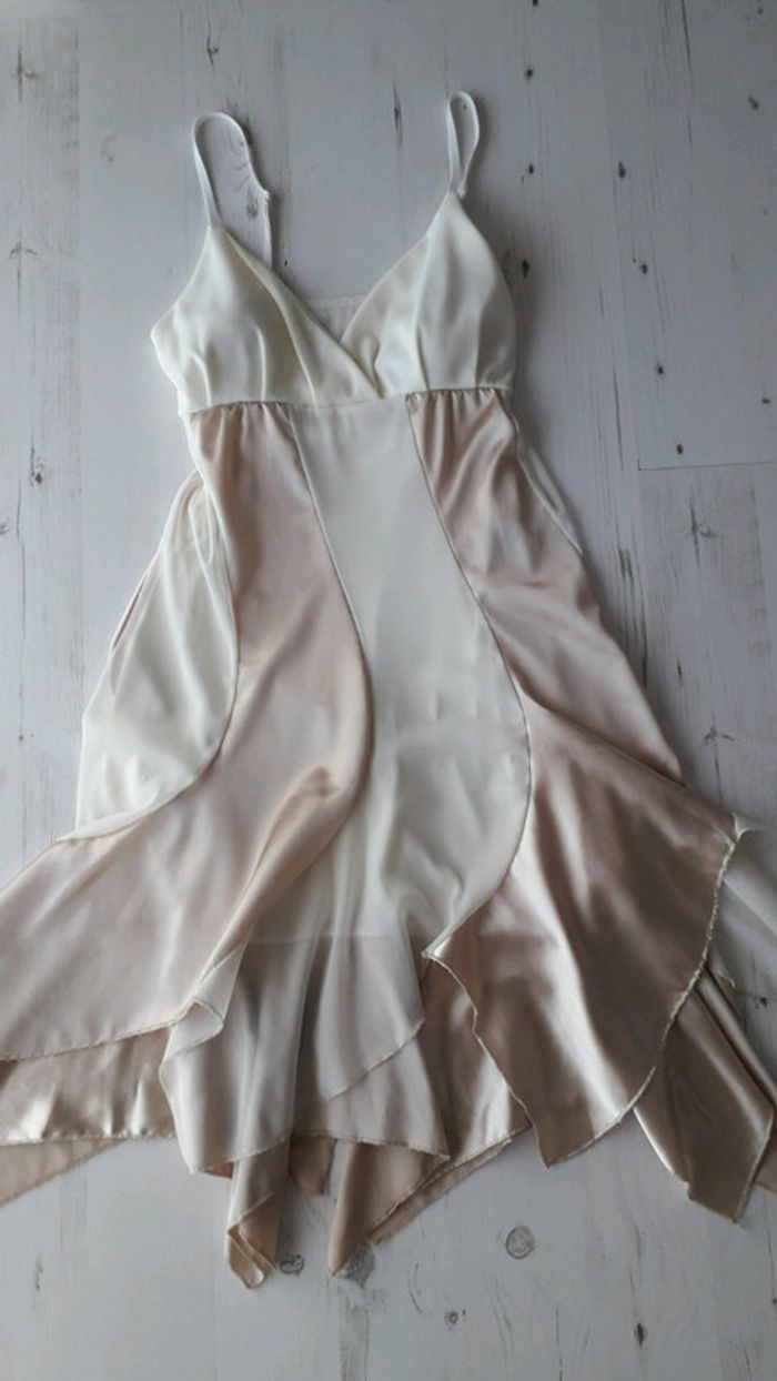 Robe courte ; Ton écru et bronze brillant ; Taille 38 ; En bon état ( deux petits défauts, voir les deux dernières photos ) #taille38_louanne59430