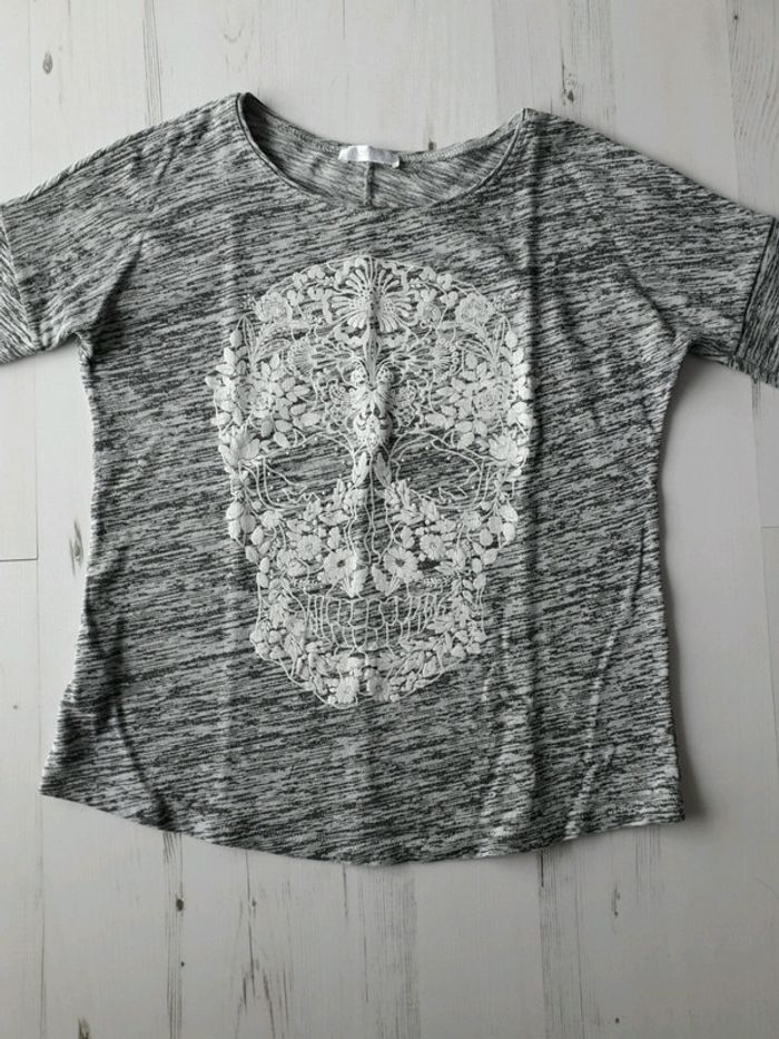 Pull de marque Promod, thème tête de mort ; Taille 1 ( 36 / 38 ) ; Ton gris ; En très bon état #taille36_louanne59430 #taille38_louanne59430