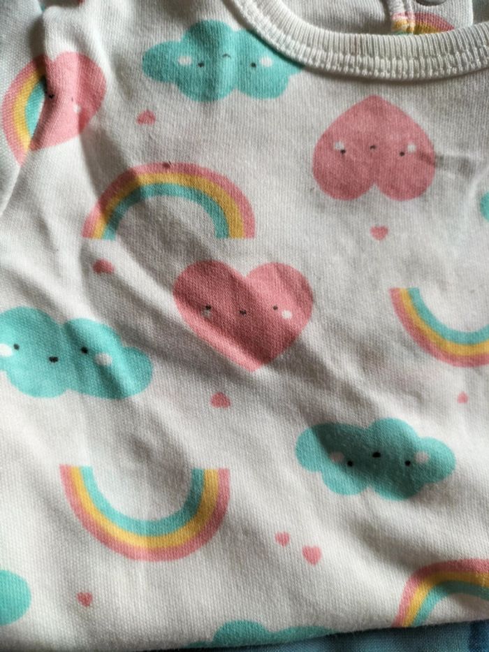 Neuf. Blanc avec motifs nuage, arc en ciel et coeur. Matière coton. Taille 1 mois. #1moisfillegaelle