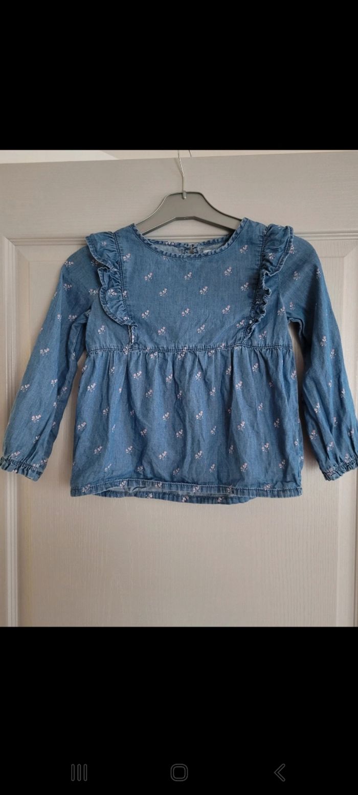 Blouse fleuri en jean - photo numéro 1