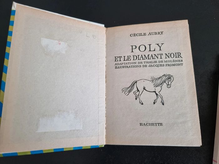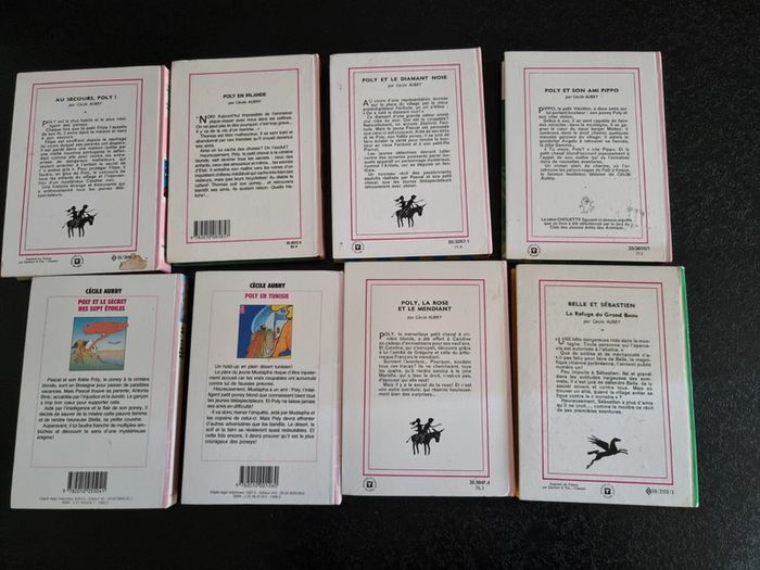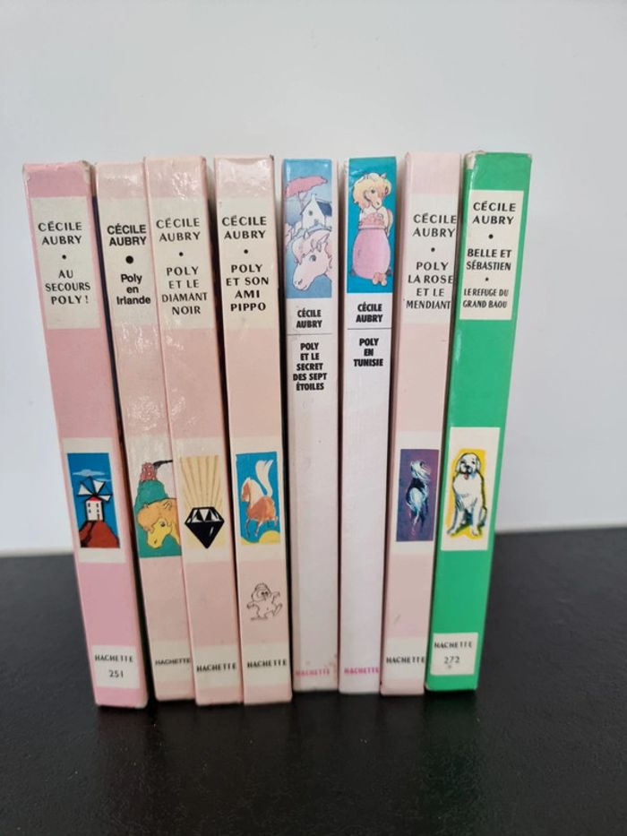 Lot de livres anciens de Cécile Aubry comprenant : - Au secours Poly ! (1967) première page découpée, voir photo - Poly en Irlande (1982) - Poly et le diamant noir (1968) - Poly et son ami Pippo (1971) - Poly et le secret des sept étoiles (1978) - Poly en Tunisie (1973) - Poly, la rose et le mendiant (1976). Une inscription "Joyeux Noël..." sur la première page, voir photo - Belle et Sébastien le refuge du grand Baou (1965). Un nom inscrit sur la 3e page, voir photo Bibliothèque rose et verte Hachette Format poche TBE sauf défauts mentionnés plus haut Pas d'envoi par relais-colis merci