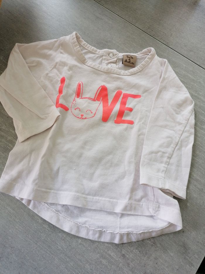 Jolie tee shirt manche longue, en Très bon état. Taille 12 mois, 74cm