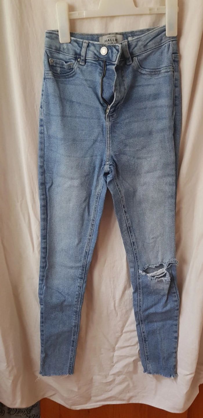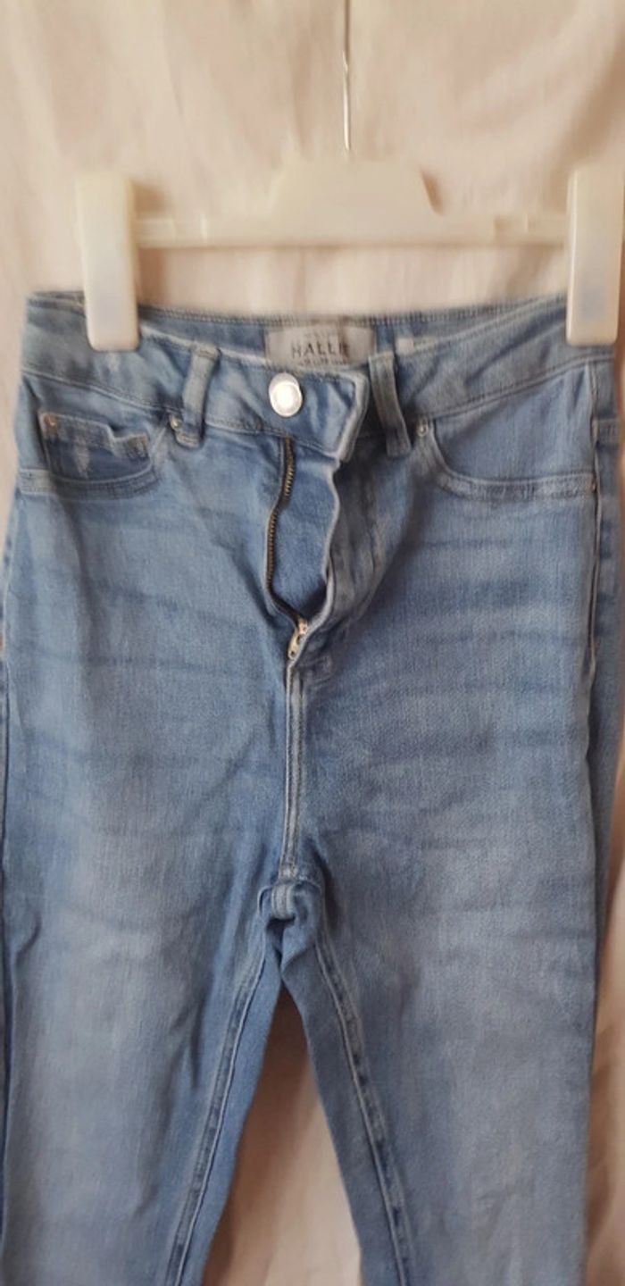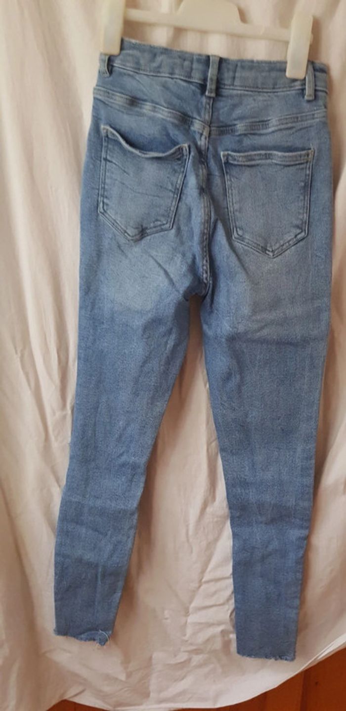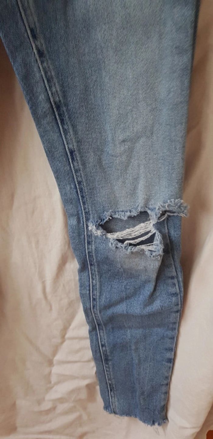 Taille haute. Bas de jambes effilochés. Contient 2%elasthane. Contour taille : 60 cm. Longueur totale : 94 cm. #sissimimi9138