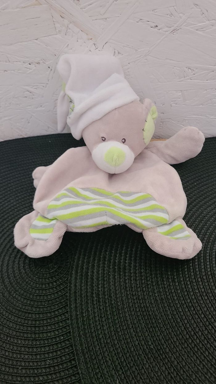 Doudou plat ours beige vert blanc BABY NAT - photo numéro 1