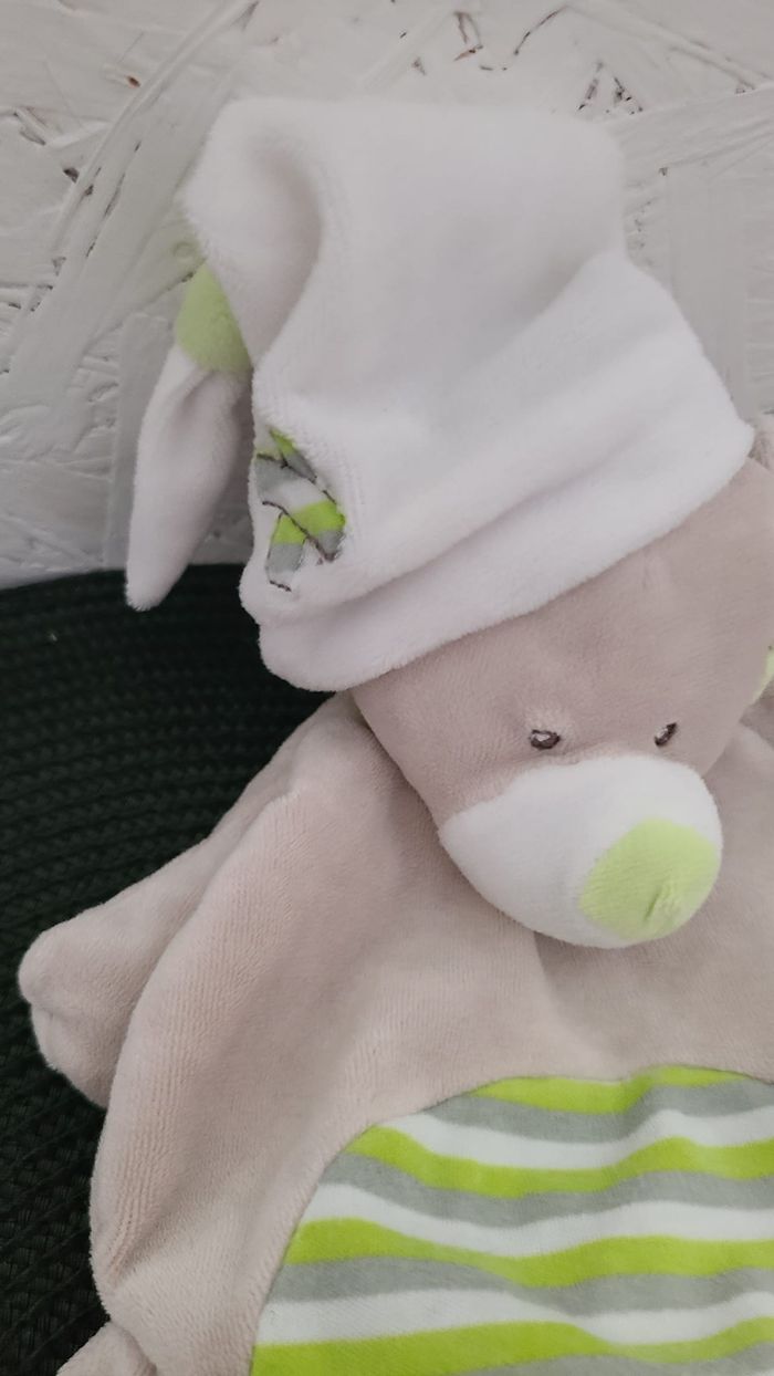 Doudou plat ours beige vert blanc BABY NAT - photo numéro 3