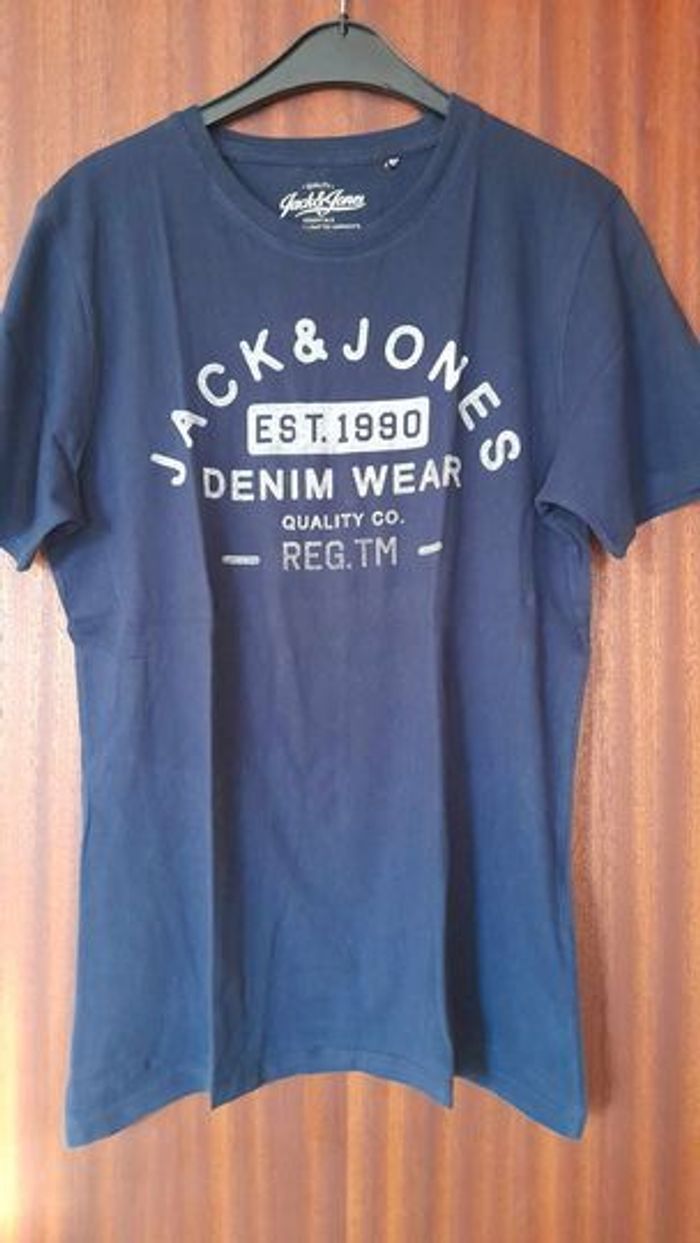 Tee-shirt homme marine imprimé gris Jack & Jones Taille M porté 1 fois très bon état