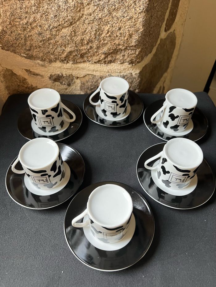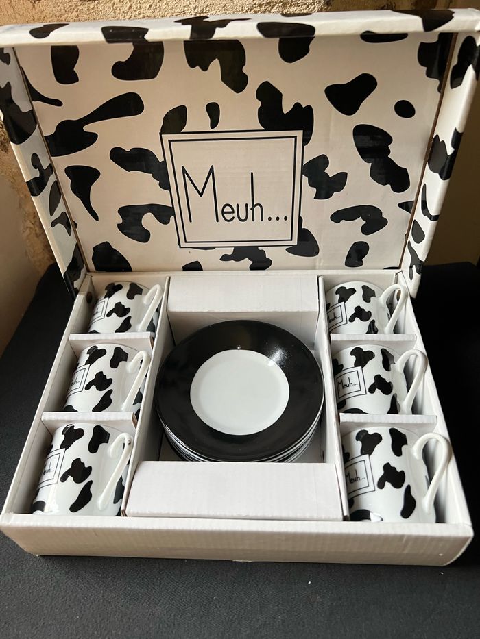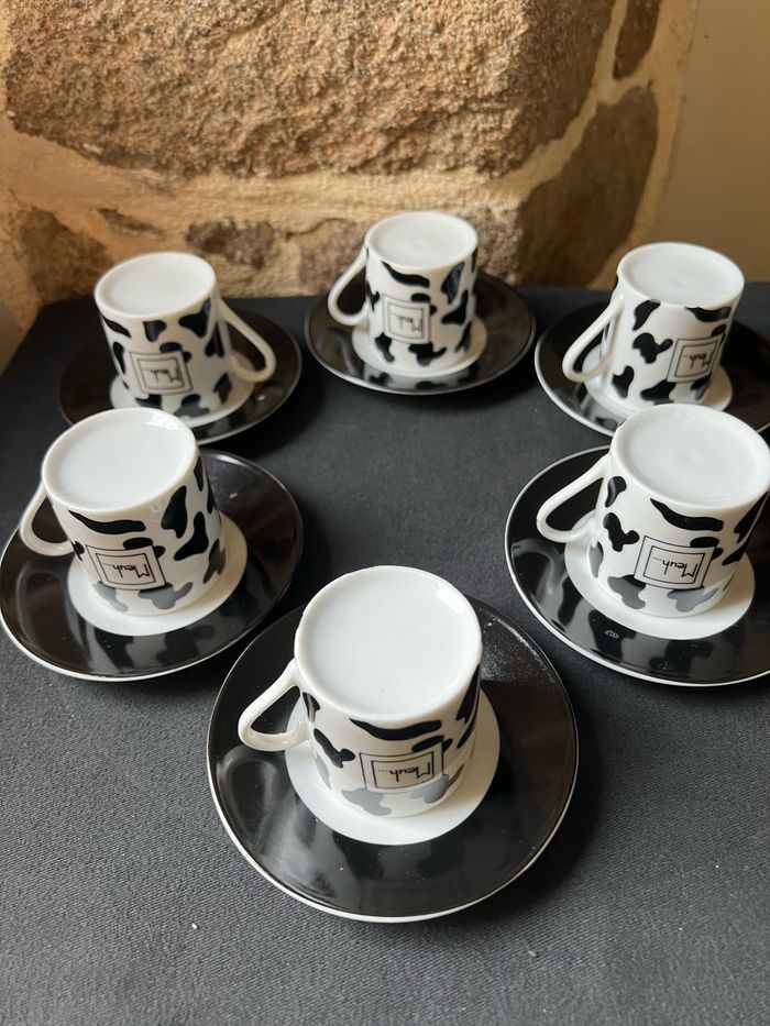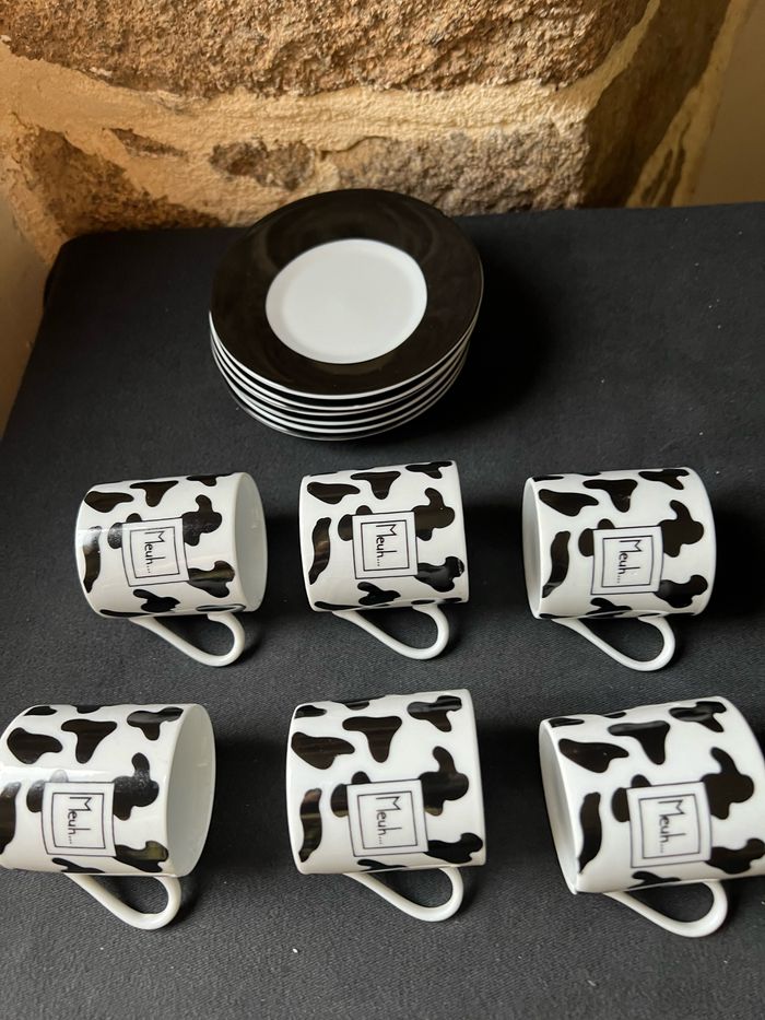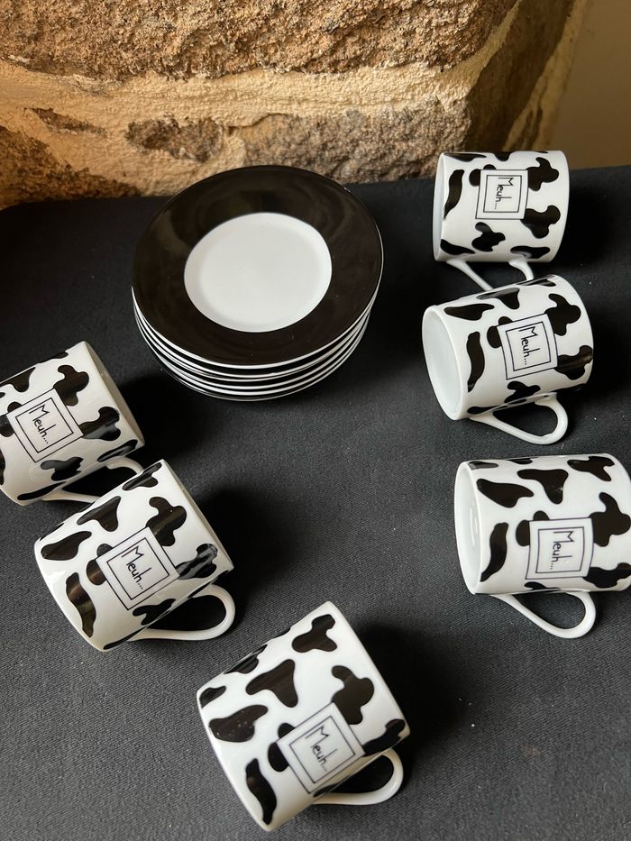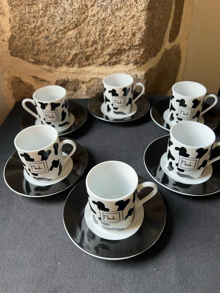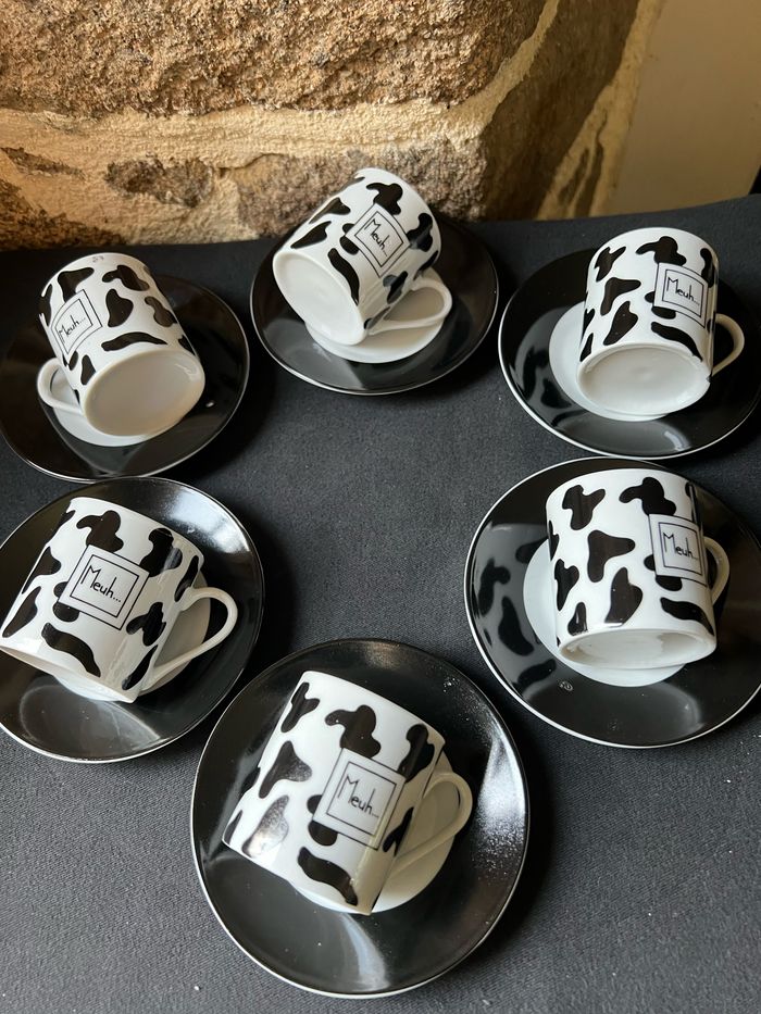 Lot de 6 petites tasses et 6 sous tasses à café Meuh
