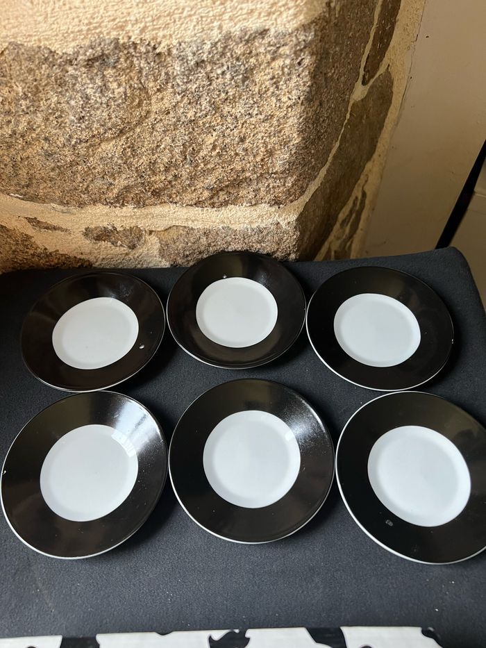 Lot de 6 petites tasses et 6 sous tasses à café Meuh Sous tasses petit défaut, petite tache blanche Jamais utilisé, dans sa boîte d’origine Tasses hauteur environ 5,5 cm Diamètre environ 4,9 cm Vintage