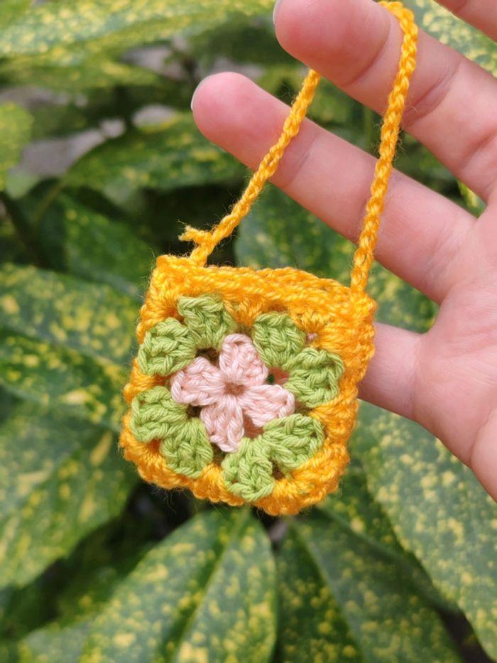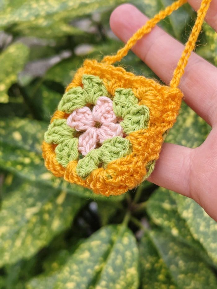 Sac granny square bandoulière barbie vert et jaune - photo numéro 1