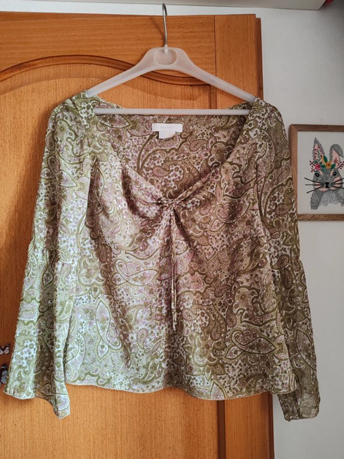 Haut d'été Zara vert motifs arabesques - photo numéro 1