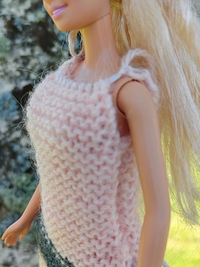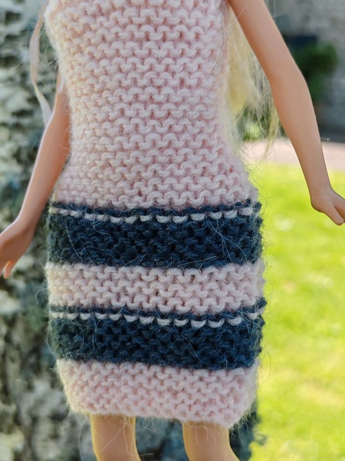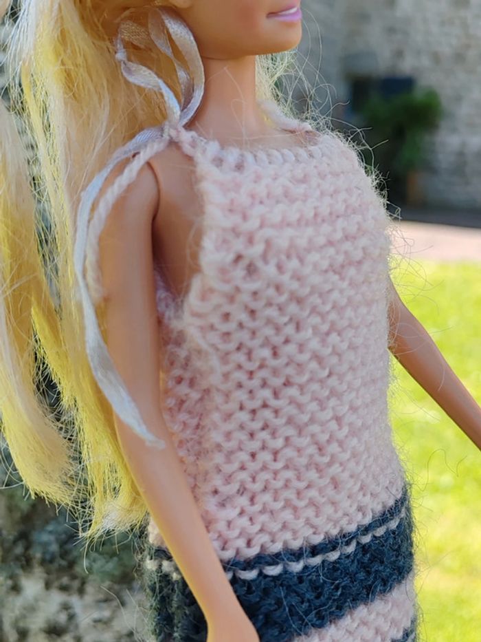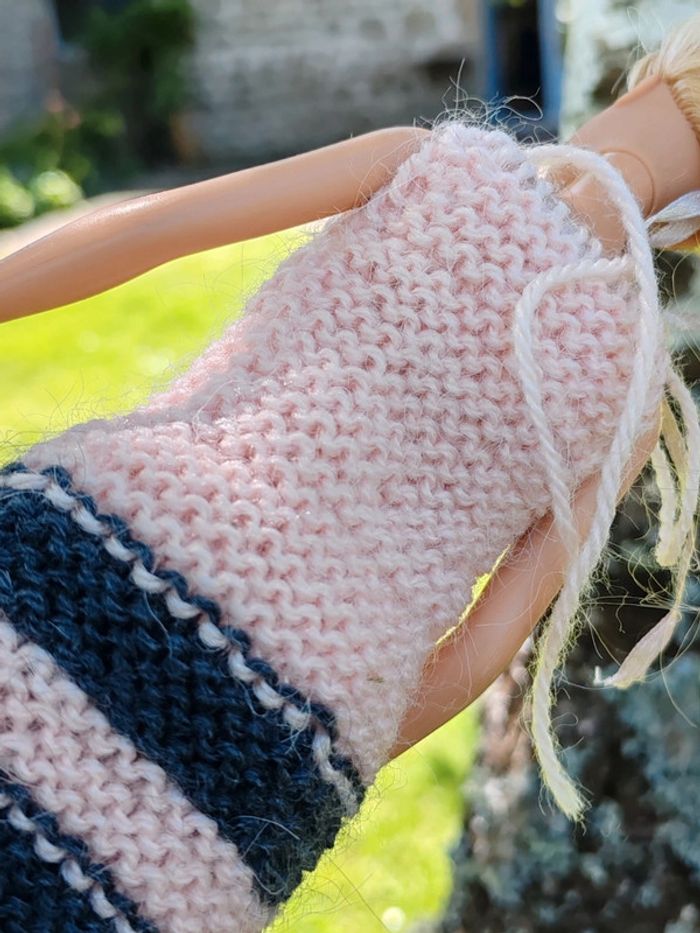 ⚠️ la poupée n'est pas à vendre, seulement sa robe ⚠️ Robe courte rose et grise Fermée avec des lacets Très bon état Tricoté à la main ➡️ #ursullabuffaybarbie #ursullabuffaypoupees #creationsdursulla