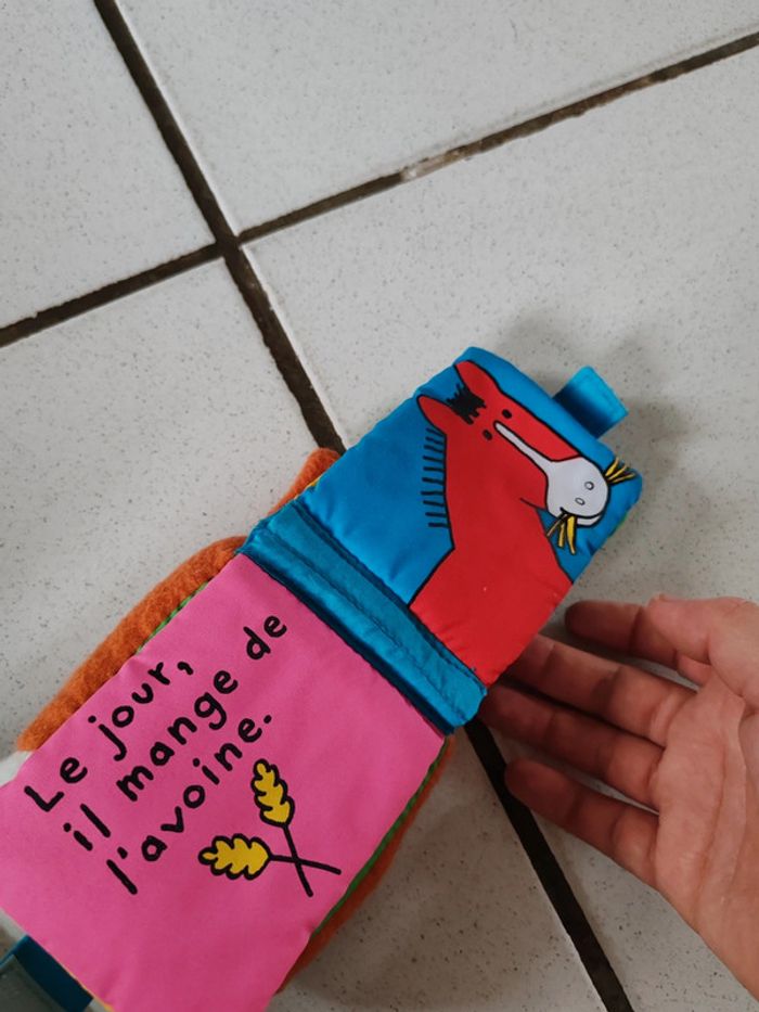 Livre en tissu tête de cheval Très bon état et avec une attache pour le fixer au lit, a la poussette ou autre ! Éditions grund ➡️ #ursullabuffaylivres #ursullabuffaybébé #ursullabuffaypeluches