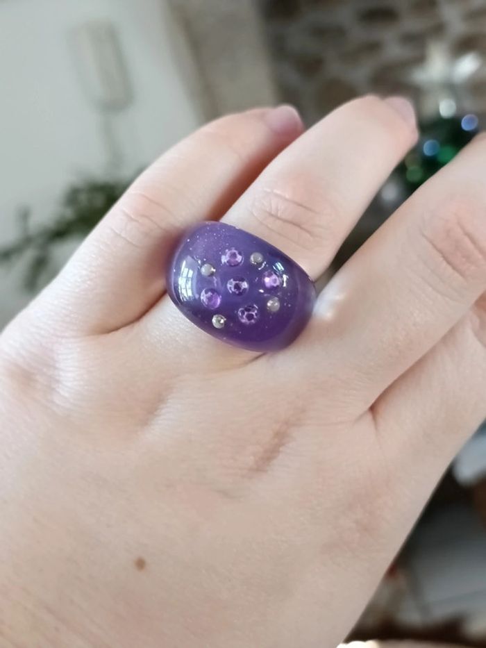 Bague violette avec strass - photo numéro 2