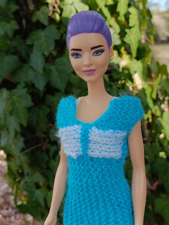 ⚠️ la poupée n'est pas en vente, seulement les vêtements ⚠️ La tenue est composée de : - une robe bleue et blanche Très bon état Tricoté main D'autres vêtements par ici : #creationsdursulla ➡️ #ursullabuffaybarbie
