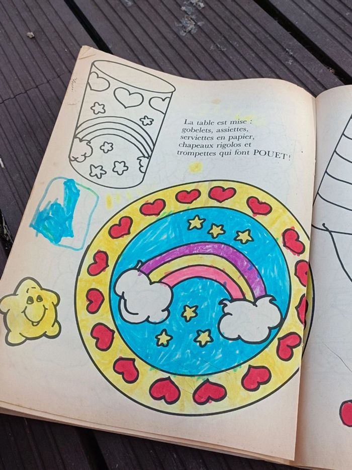 ⚠️ en l'état : des coloriages ont été commencés, et certaines pages sont abîmées par endroits TOUT les coloriages faits sont montrés en photos, il y en a quand même beaucoup qui ne sont pas coloriés Vintage ➡️ #ursullabuffaybisounours #ursullabuffaylivres