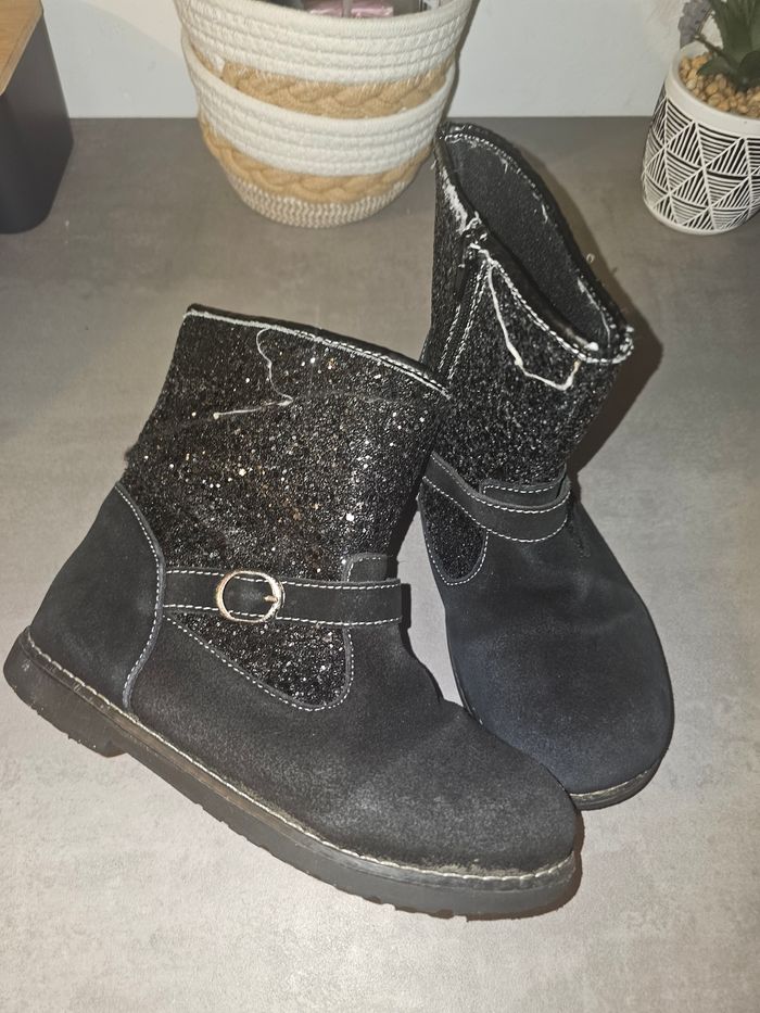 Bonjour 👋 Je vend cette: 👉 paire de bottine p34 A servi mais reste en bon état Couleur noir Maison 🏠 non fumeur et sans animaux -