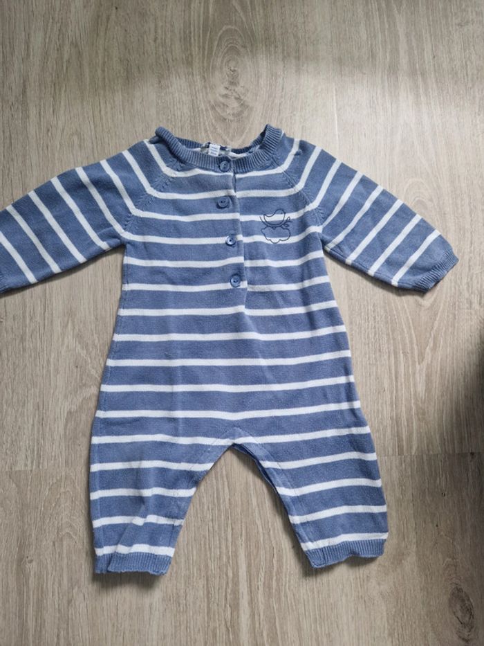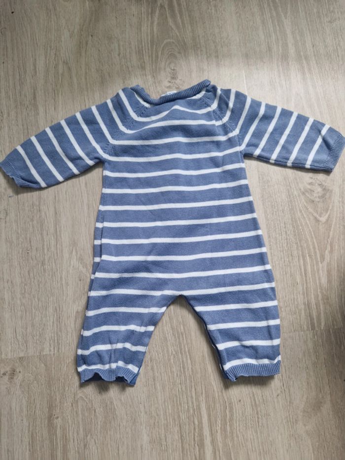 combinaison demi saison sans pieds taille 3 mois couleur bleu et blanc à rayures marque grain de blé très bon état