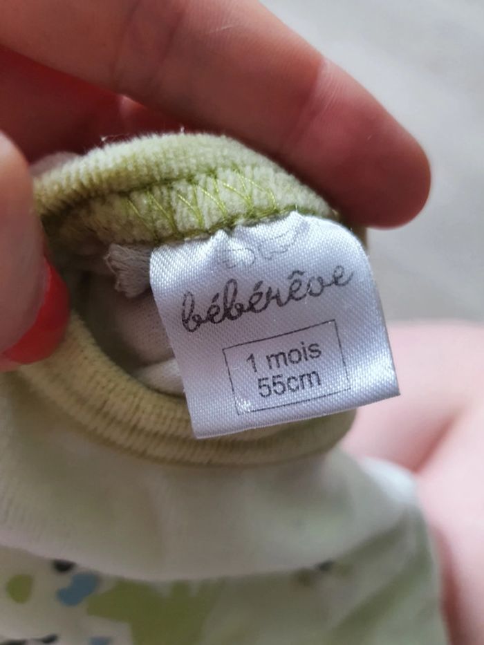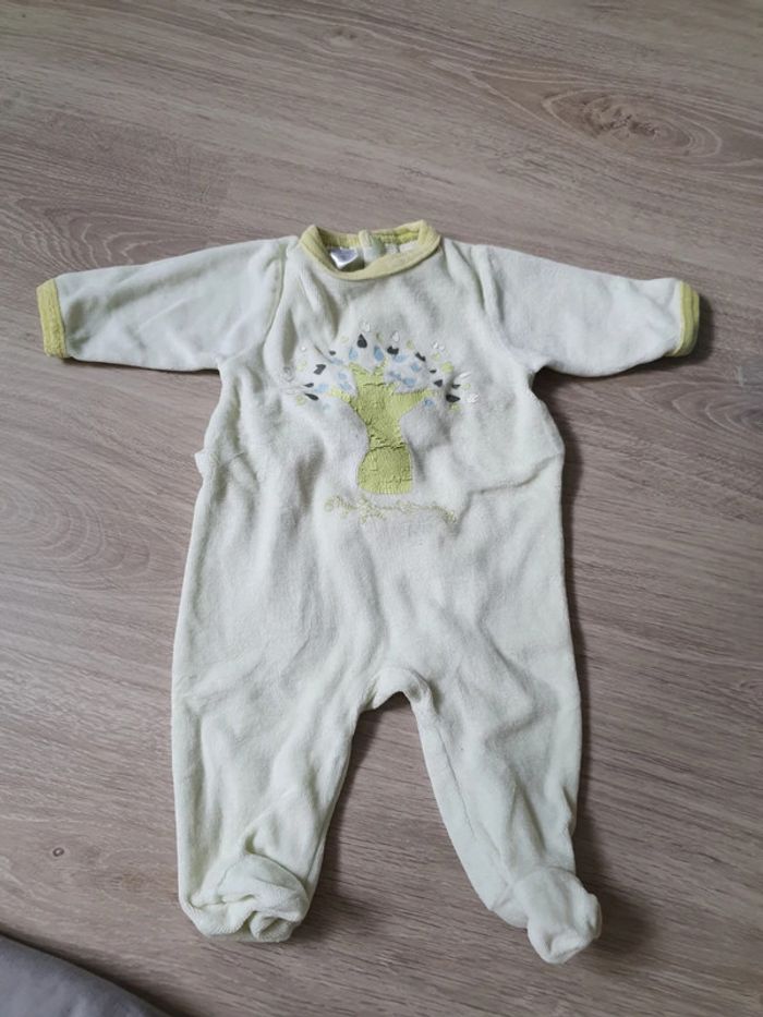Pyjama velours vert claire avec dessin arbre Taille 1 mois Très bon état Ouverture par pression à l'arrière Marque bebe reve