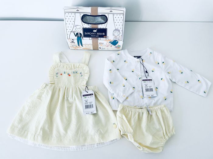 Magnifique ensemble complet Sergent Major comprenant une robe, un bloomer et une veste Taille 6 mois Articles neufs ave étiquette Prix d’achat 67€