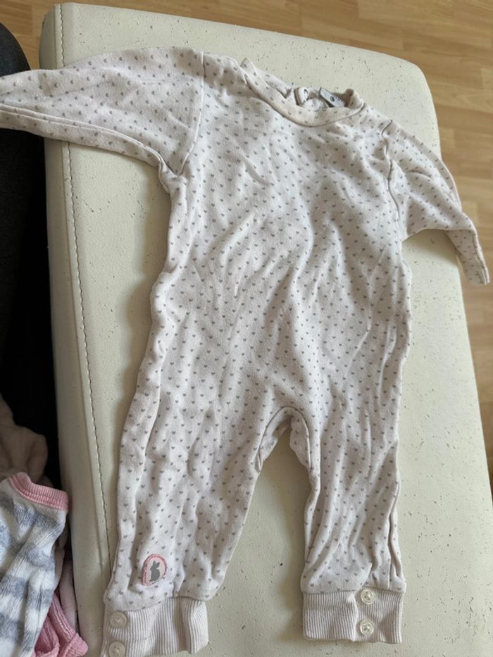 Vend pyjama fin sans pied, bon état, col un peu jauni, taille 1 mois