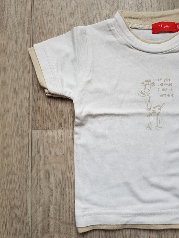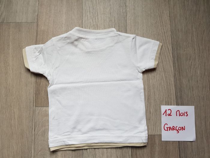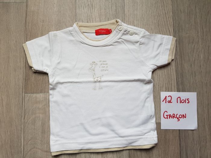 T-shirt Manches Courtes Garçon / 12 Mois / "TISSAIA" Beige et blanc crème Très bon état.