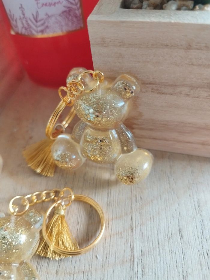 Porte clé ourson doré paillettes - photo numéro 3
