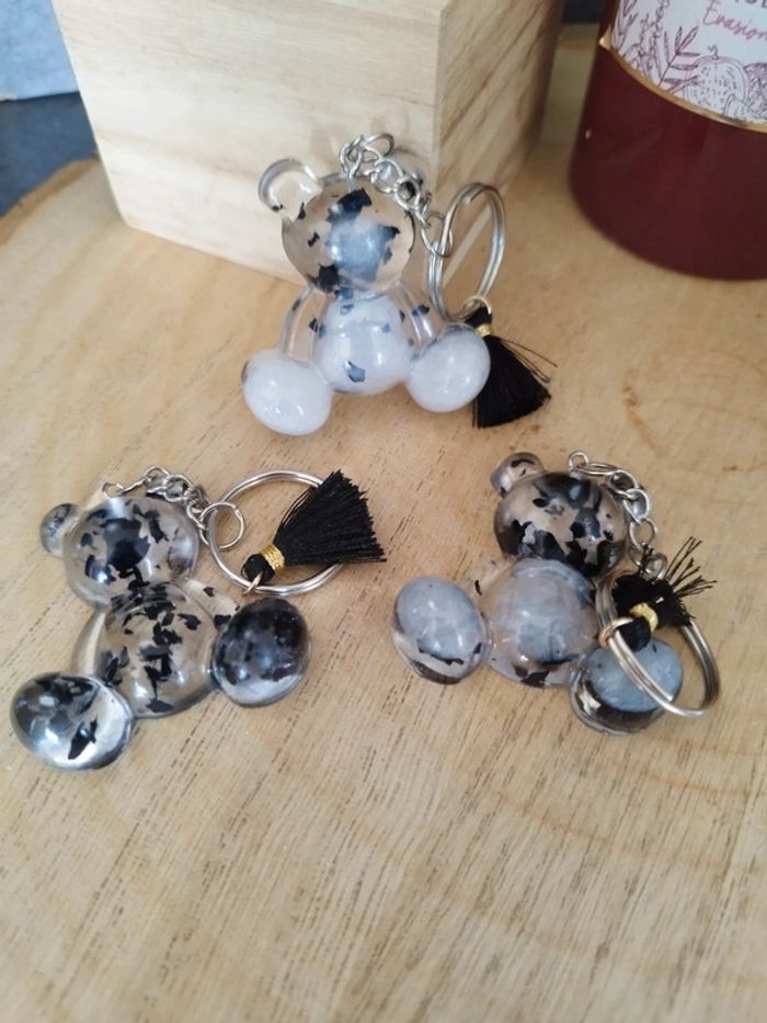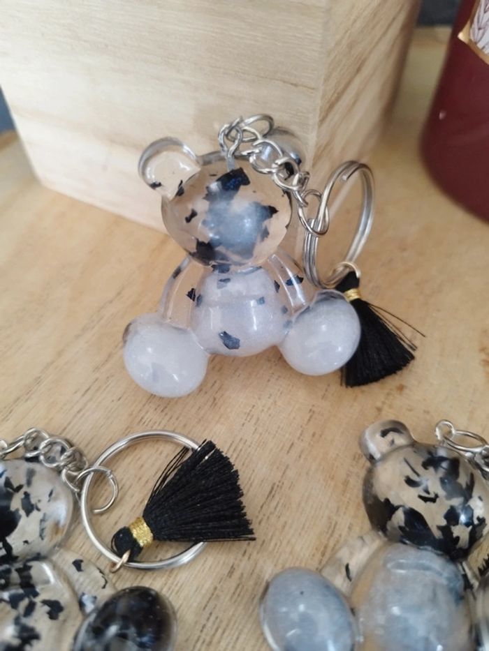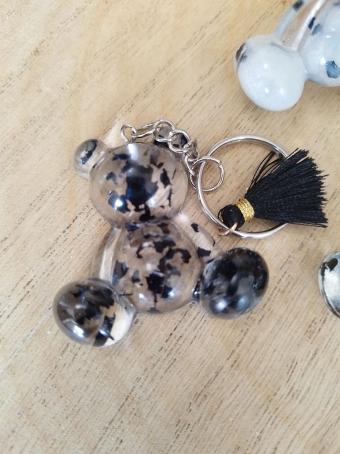 Porte clé noir argent ourson - photo numéro 3