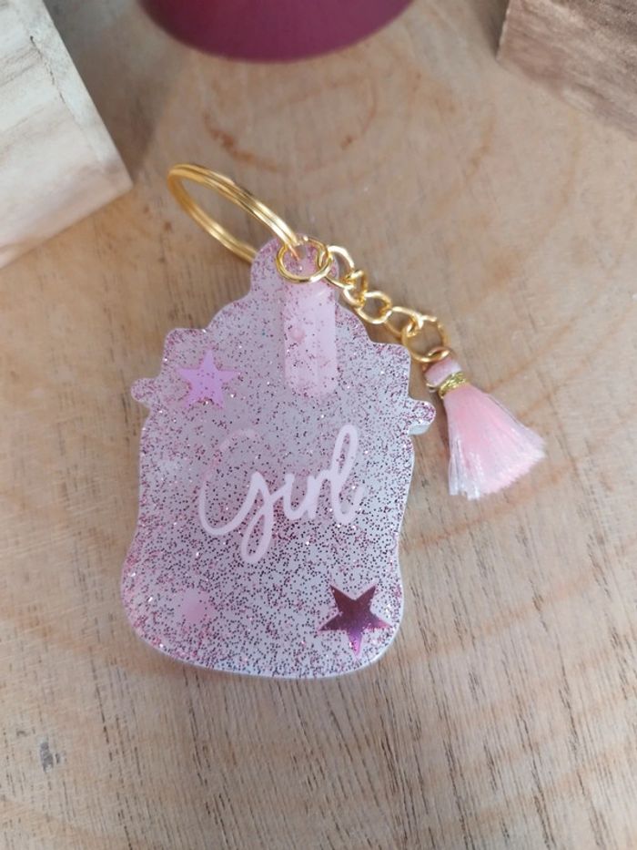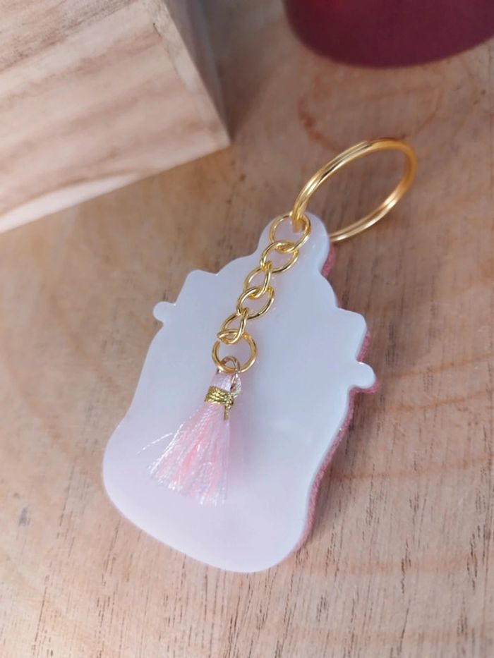 Porte clé biberon  bébé fille avec pompon rose - photo numéro 1