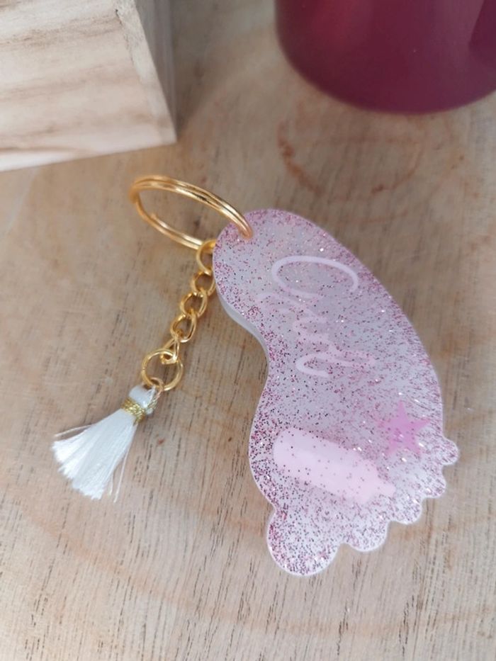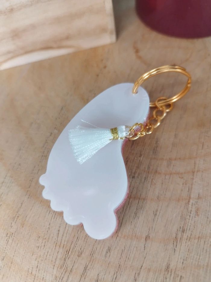 Porte clé pied gauche bébé fille avec pompon blanc - photo numéro 1