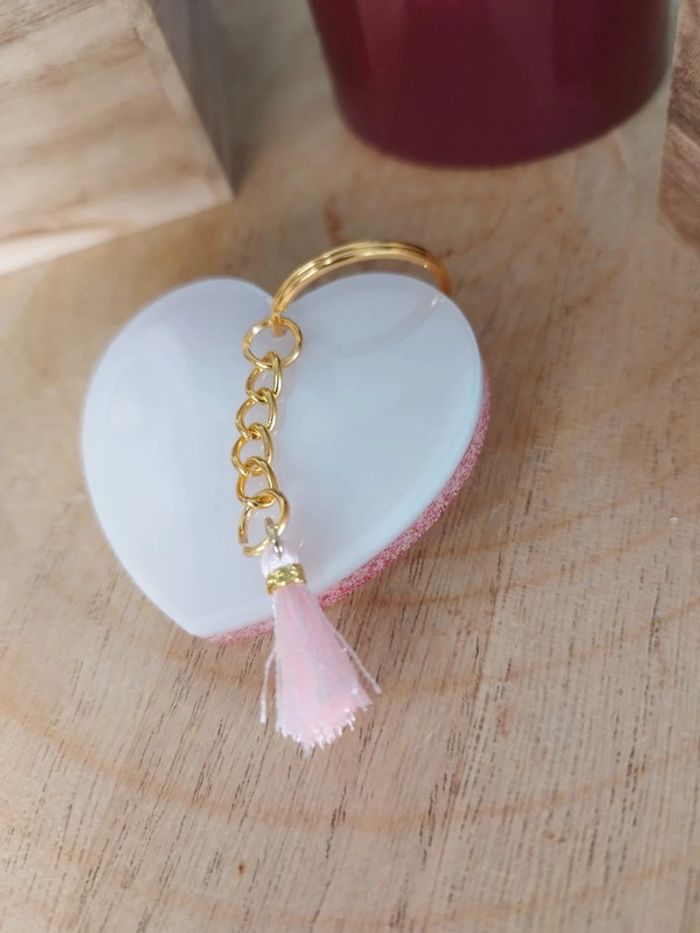 Porte clé coeur bébé fille avec pompon rose - photo numéro 2