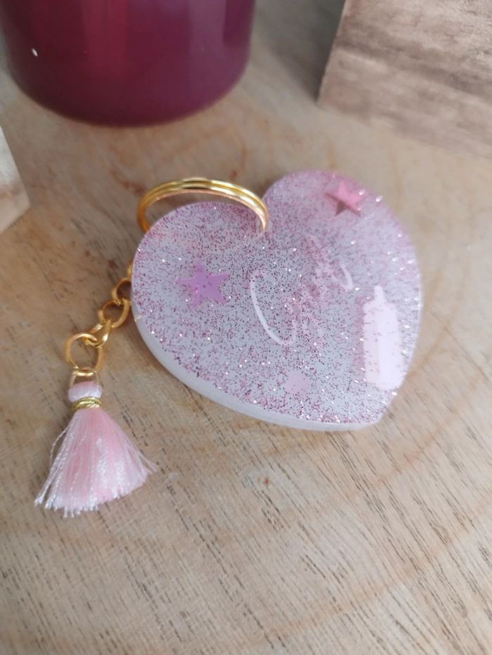 Porte clé coeur bébé fille avec pompon rose - photo numéro 1