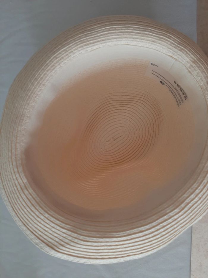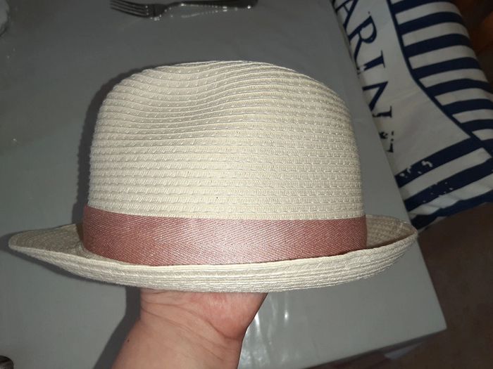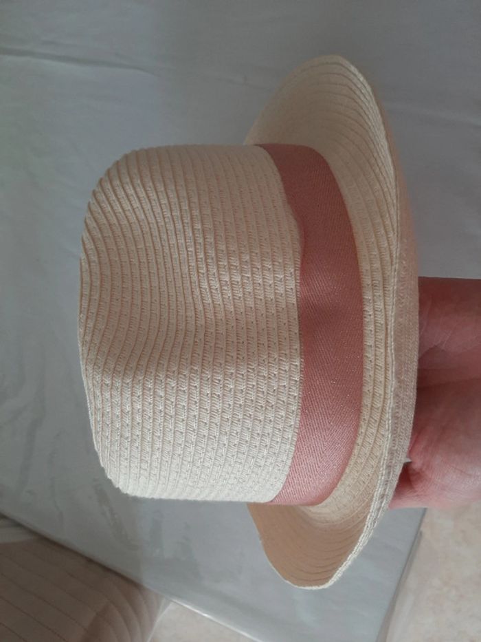 Superbe chapeau beige effet paille avec bordure rose clair. Effet un peu "pailleté". Jamais porté. Taille Unique. Je le vends au prix de 10 euros. #TailleUniquemarine