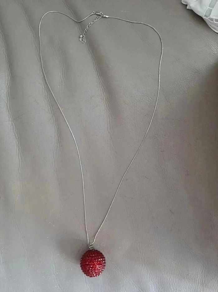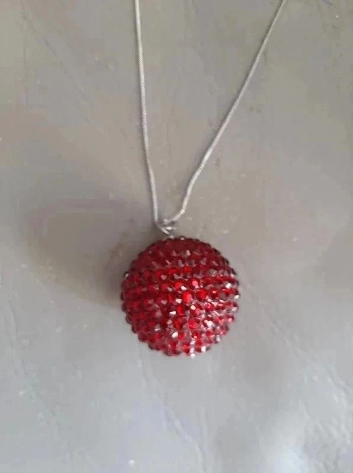 Sautoir gris avec boule rouge composée de strass. Ce collier est super original et se porte avec beaucoup de tenues et de styles. Il est en super état. Magnifique. Je le vends au prix de 15 euros. #Bijouxmarine