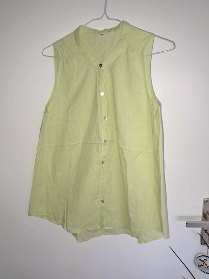 Joli débardeur ample vert pomme taille 40. Excellent état. Boutons. Je le vends au prix de 7 euros. #TailleL40marine
