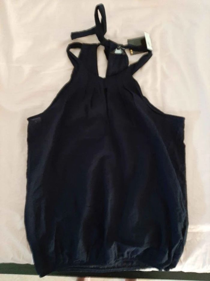Top léger bleu marine. Se noue derrière. Petit décolleté. Taille 38. Acheté 25€. Neuf avec étiquette. Je le vends au prix de 15 euros. #TailleM38marine
