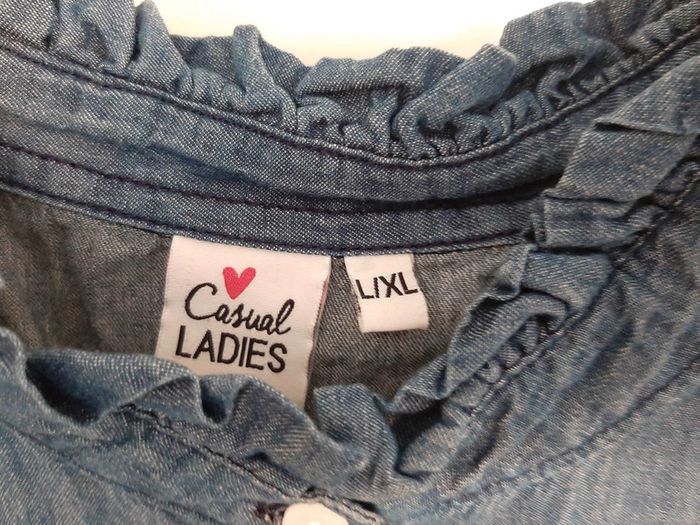 Joli sous-col en jean taille L/XL. Elastiques sur les côtés. Boutons à l'avant et petit col froncé. Super joli ! Pas porté. Je le vends au prix de 12 euros. #Accessoiresmarine