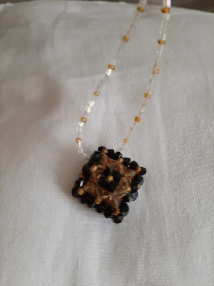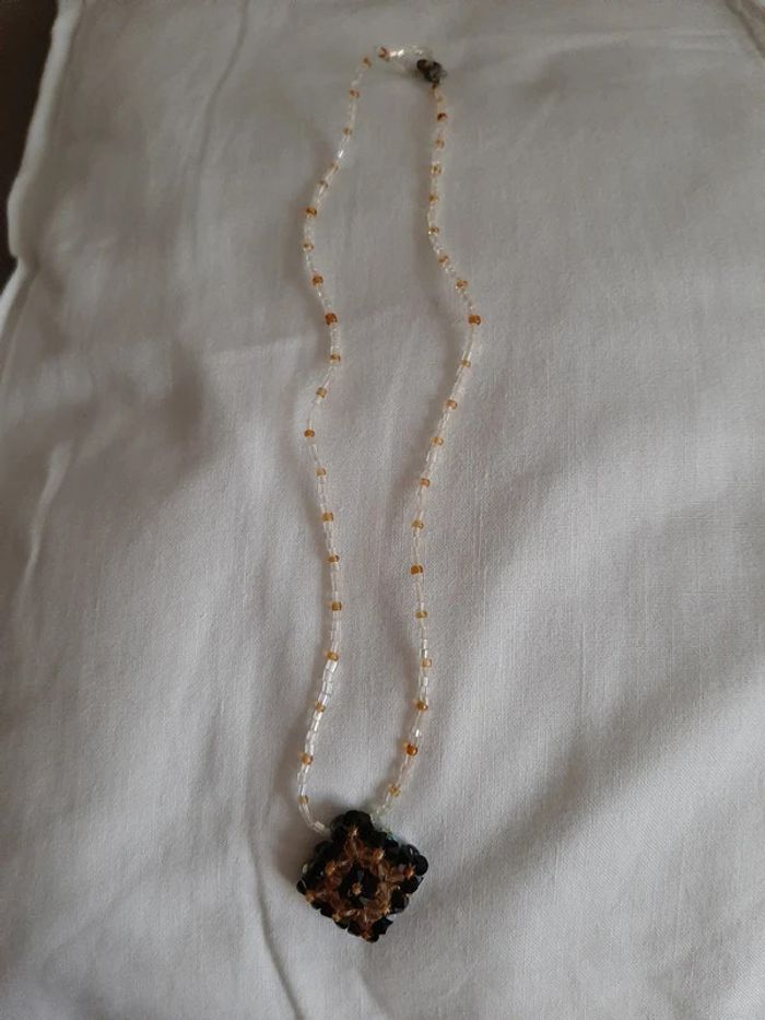Collier en perles blanches, noires et jaunes/dorées. Il est très mignon et très léger. Je le vends au prix de 7 euros. #Bijouxmarine