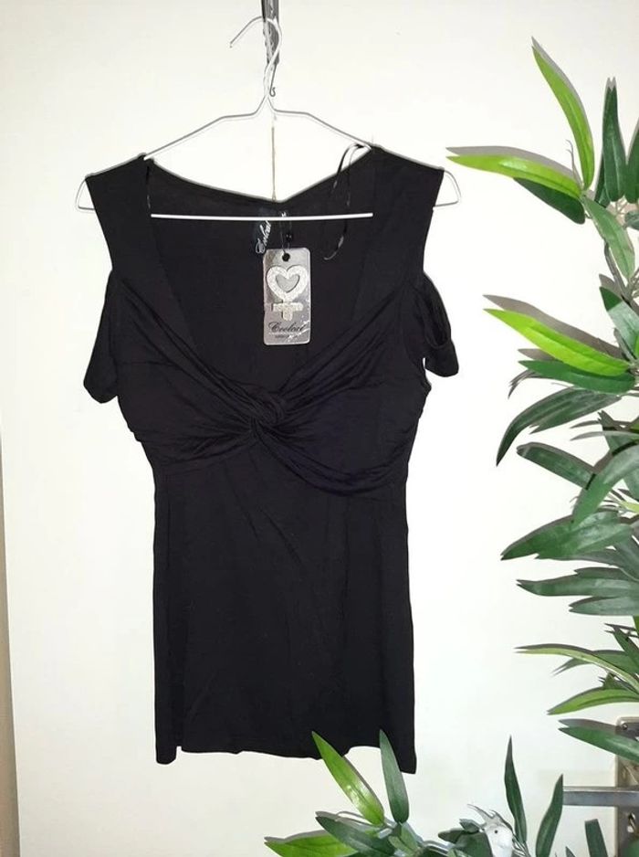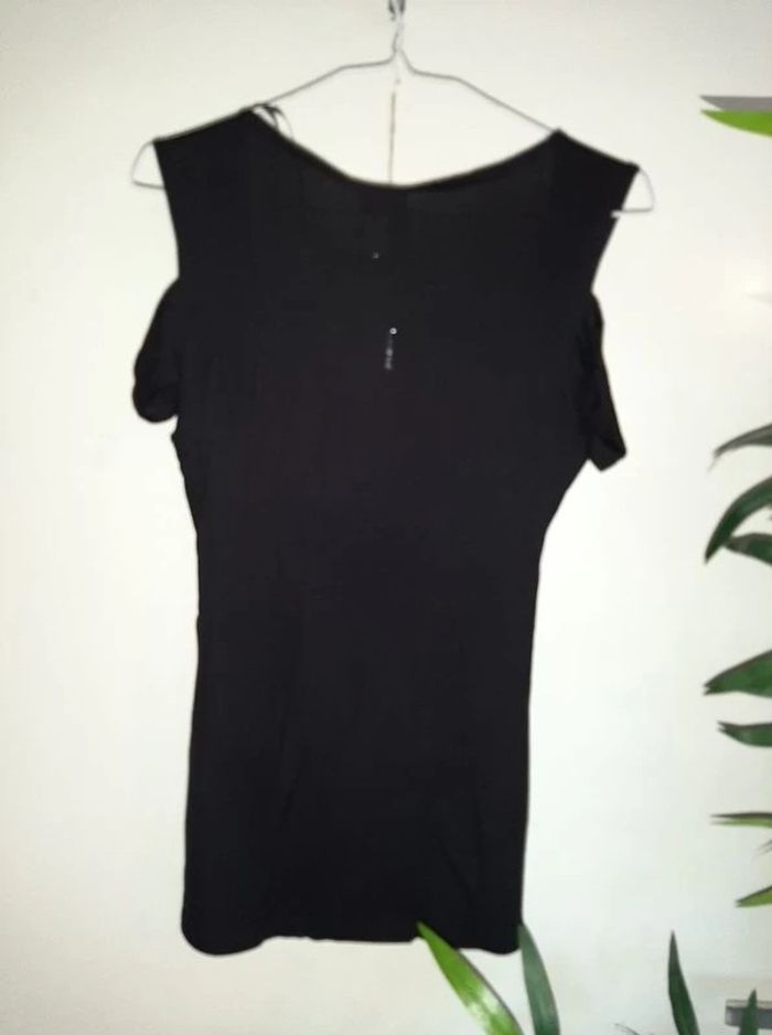 T-shirt noir avec épaules dénudées. Décolleté. Taille M, neuf avec étiquette. Je le vends au prix de 7 euros. #TailleM38marine