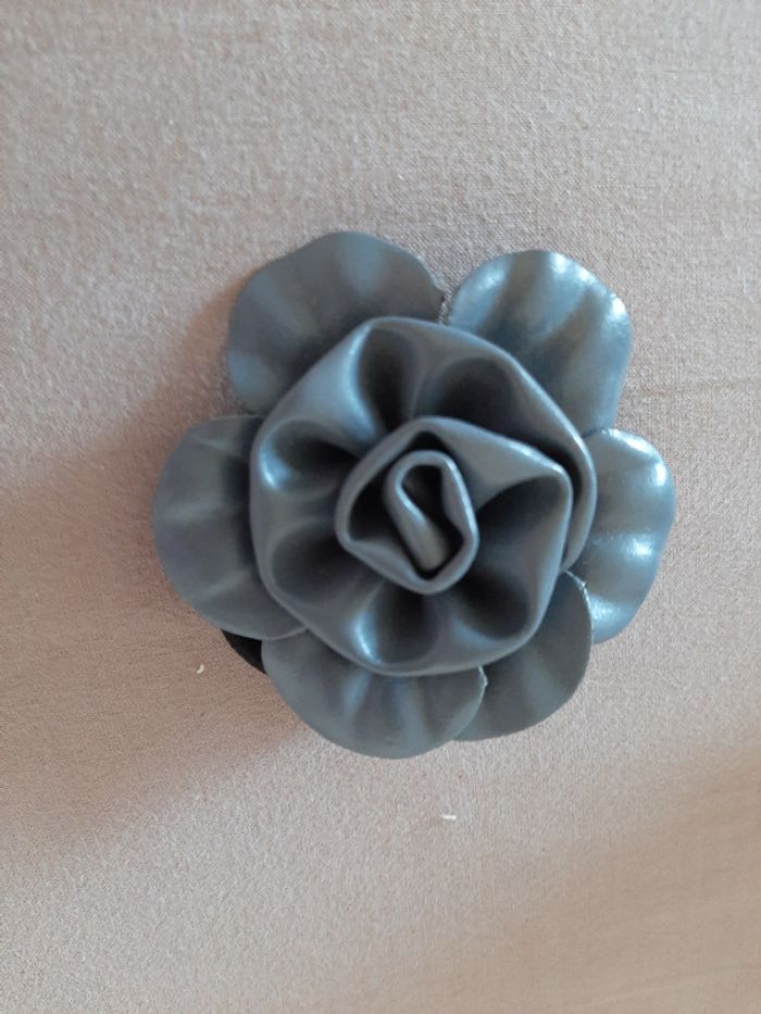 Fleur en similicuir grise que l'on peut utiliser de 3 manières : en broche, avec l'élastique pour une coiffure une avec la pince pour dans les cheveux. Toujours été stockée. C'est canon ! J'ai la même en noir. Je le vends au prix de 4 euros. #Accessoiresmarine