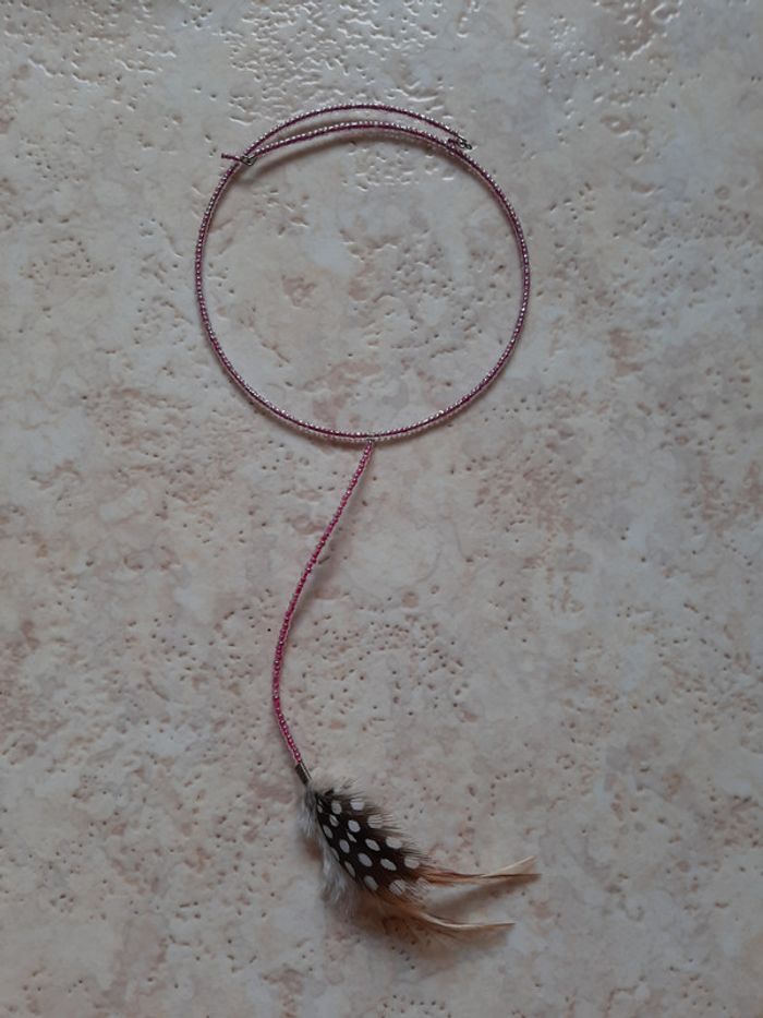 Collier très mignon avec perles roses et une plume brune. Modèle qui s'adapte au cou et est ras-du-cou. Ensuite une longue chaine de perles qui se termine par une belle plume. Il est léger et super original. Je le vends au prix de 7 euros. #Bijouxmarine