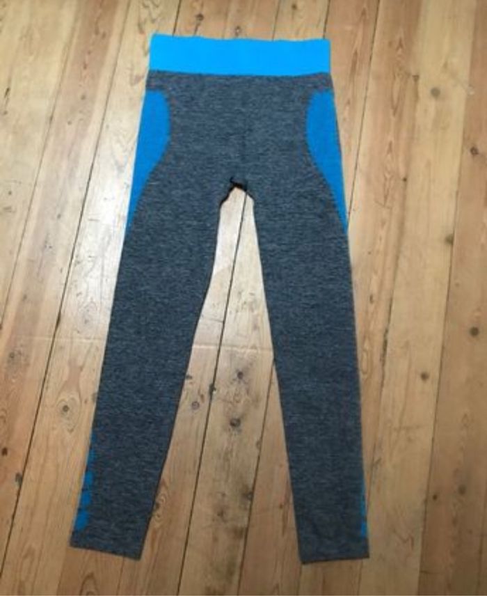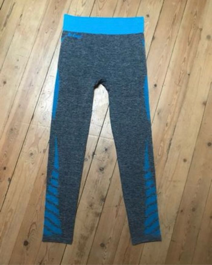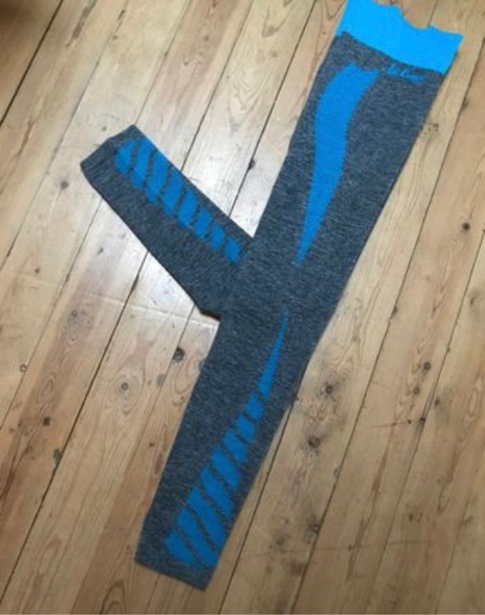 Caleçon legging de sport gris chiné et bleu assez épais 92% polyester 8% élasthanne taille S/M Lee Cooper