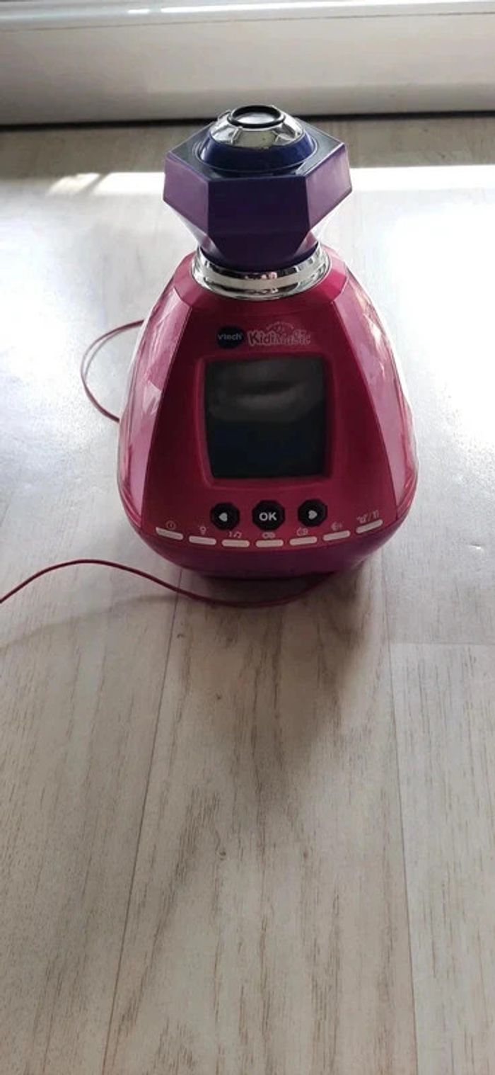 KidiMagic Color Show - 6 - 12 ans Un joli flacon de parfum magique ! Projection de l'heure et commande par détection de mouvement : il suffit de passer la main au-dessus du flacon pour jouer ou changer sa couleur. Il répond aux questions secrètes et donne ton indice « chance » du jour et te permet d'en savoir plus sur tes amies. 6 jeux inclus. Fonctions réveil, radio FM, enceinte musique MP3, zen attitude avec jeux de musiques et lumières. La voix douce lit l'heure à voix haute. Dès 6 ans. Fonctionne avec 4 piles LR6...