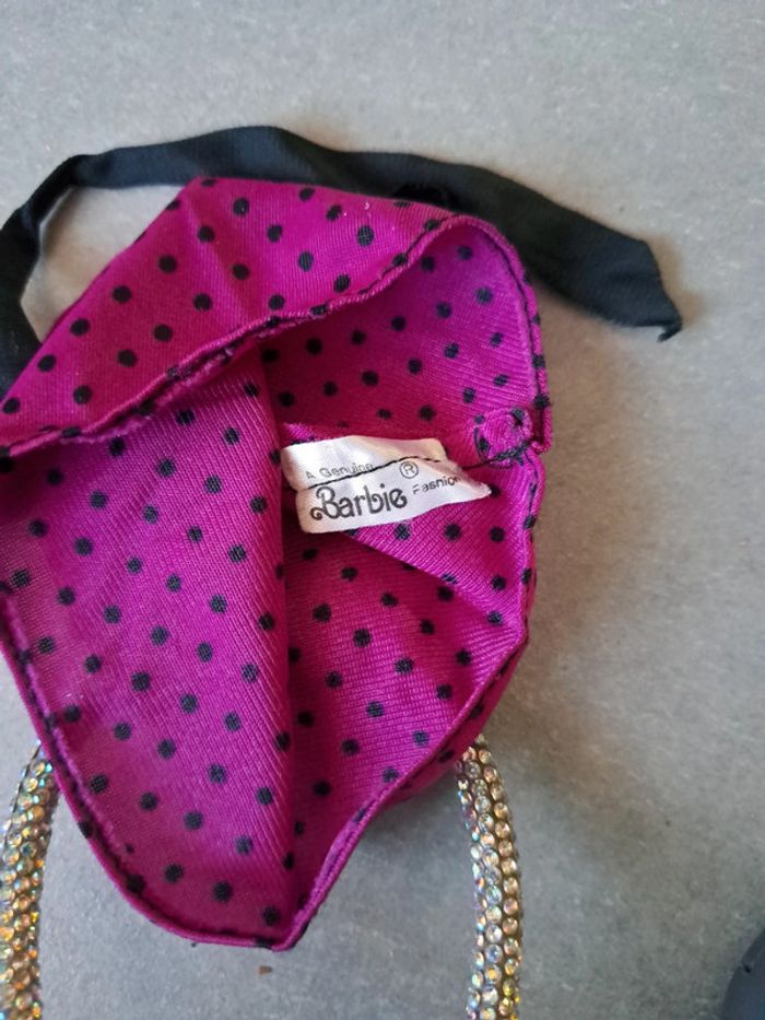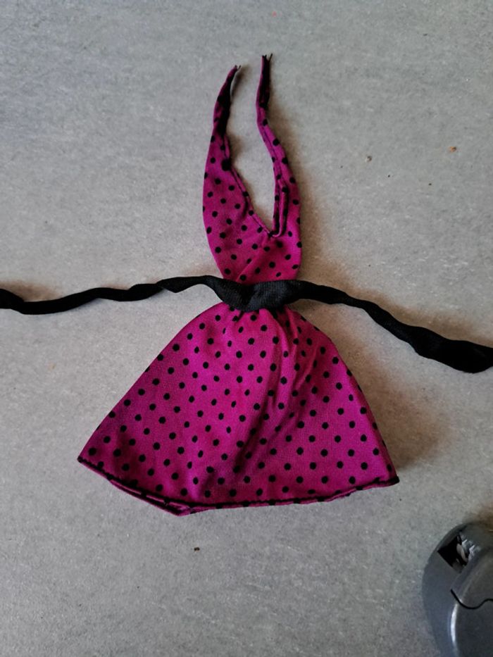 Tenue pour Poupée barbie vintage Robe violette à pois noirs 1984