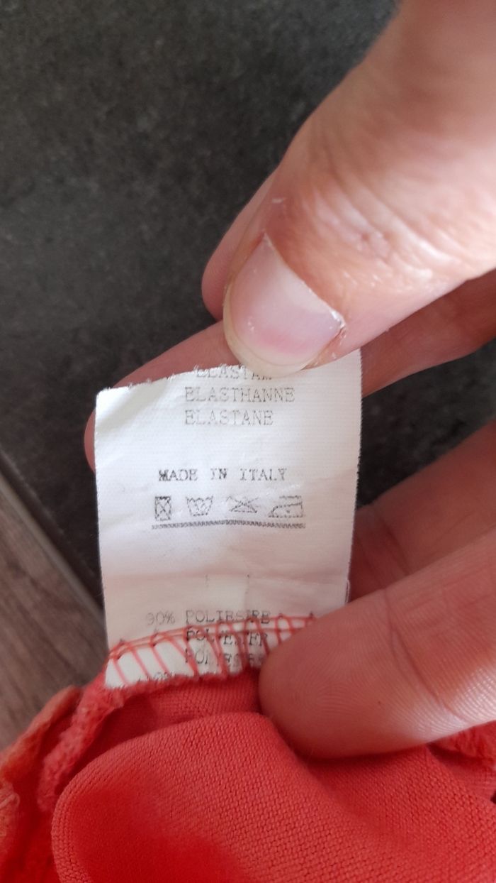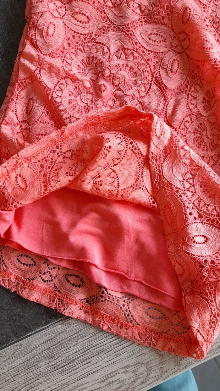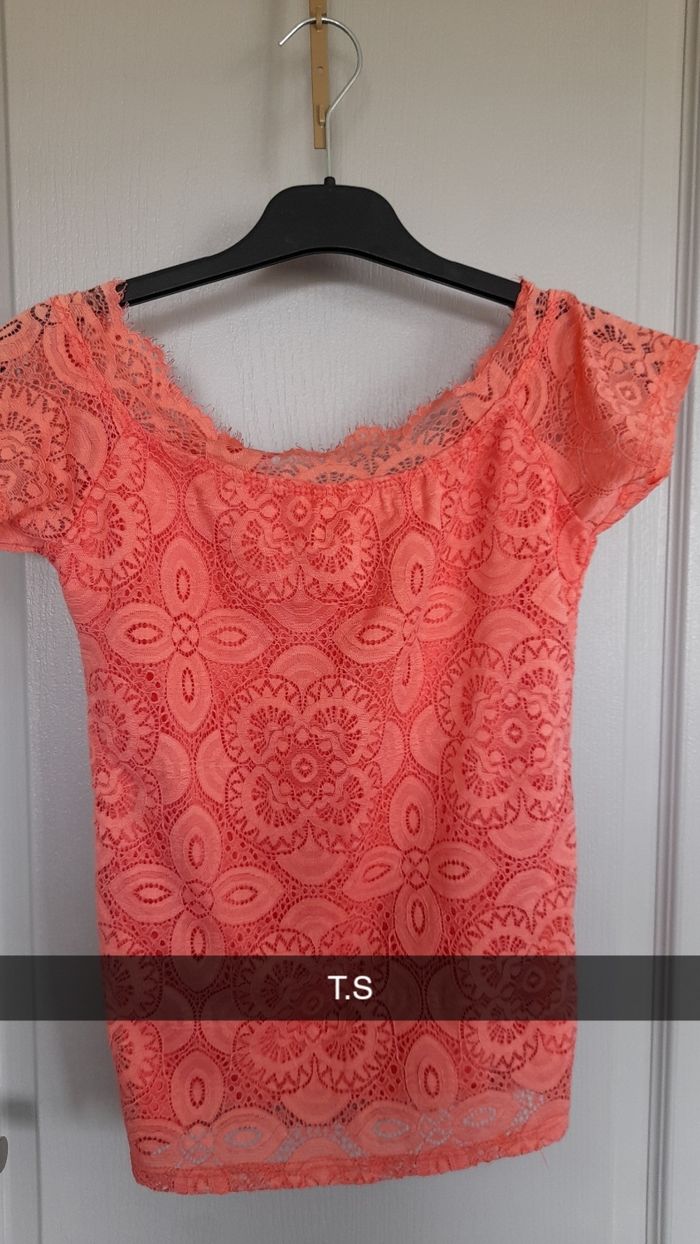 Tee shirt taille S, épaules dénudées. Couelur saumon, très bon état, sans étiquette de taille. En elastanne