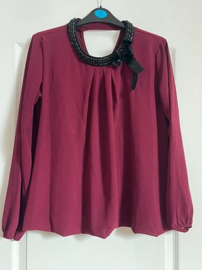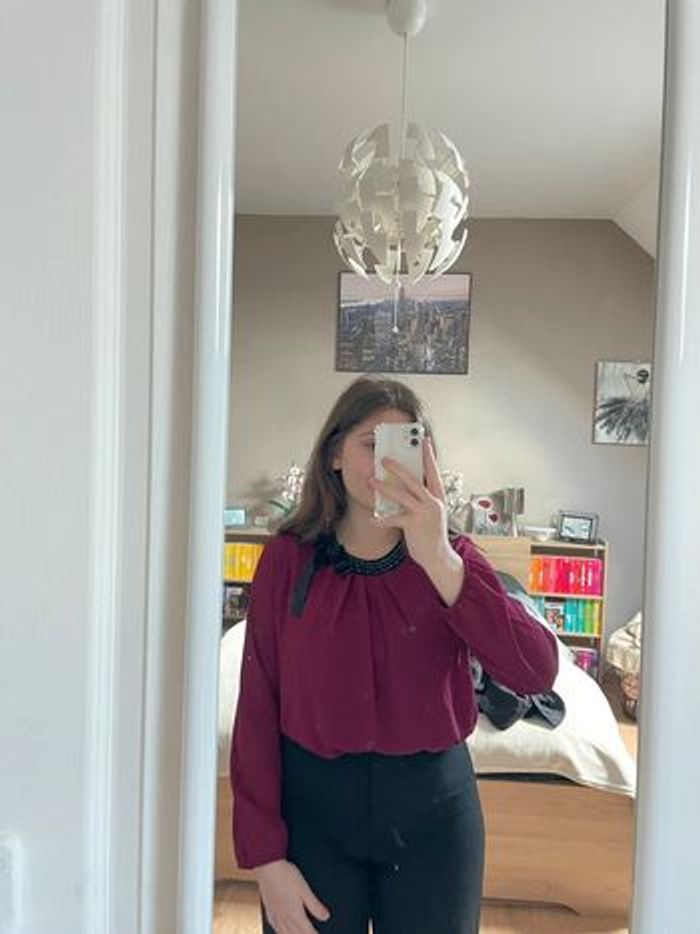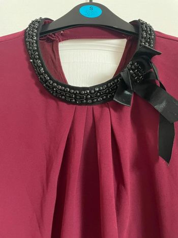 Blouse bordeaux avec col en perle noir Top très peu porté, en excellent état Il est très léger Taille S #julie301101femmeS