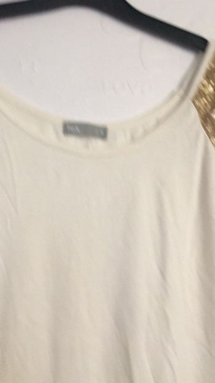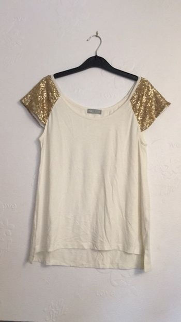 teeshirt blanc avec les manches en paillettes or #julie301101femmeS