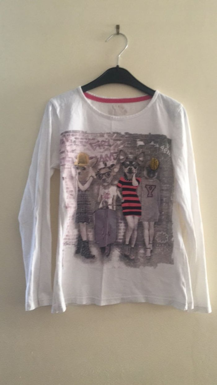teeshirt à longues manches blanc avec imprimé (voir photo) #julie301101fille11ans