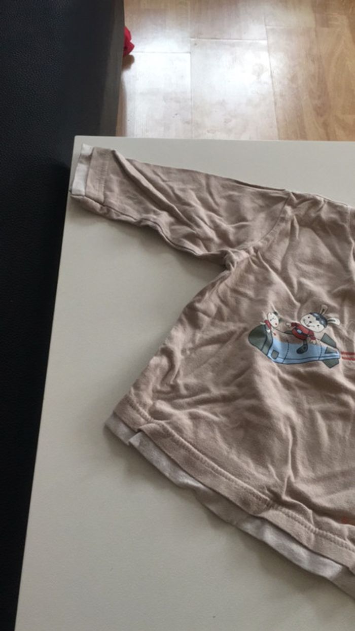 teeshirt à longues manches beige avec des imprimés ( voir photo ), des détails aux extrémités ( voir photo ) et des pressions à l’une des épaules #julie301101garcon12-18mois