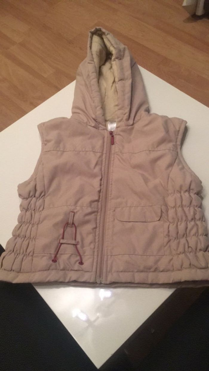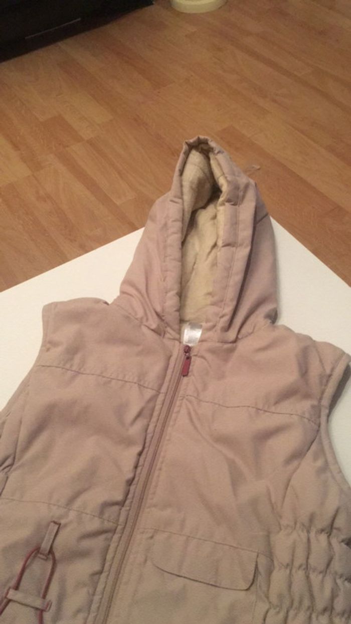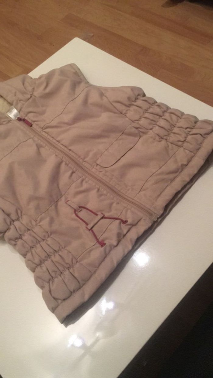 veste d’extérieur beige à capuche et zippé avec une poche sur le devant, elle est réglable à la taille ( voir photo) #julie301101fille6ans
