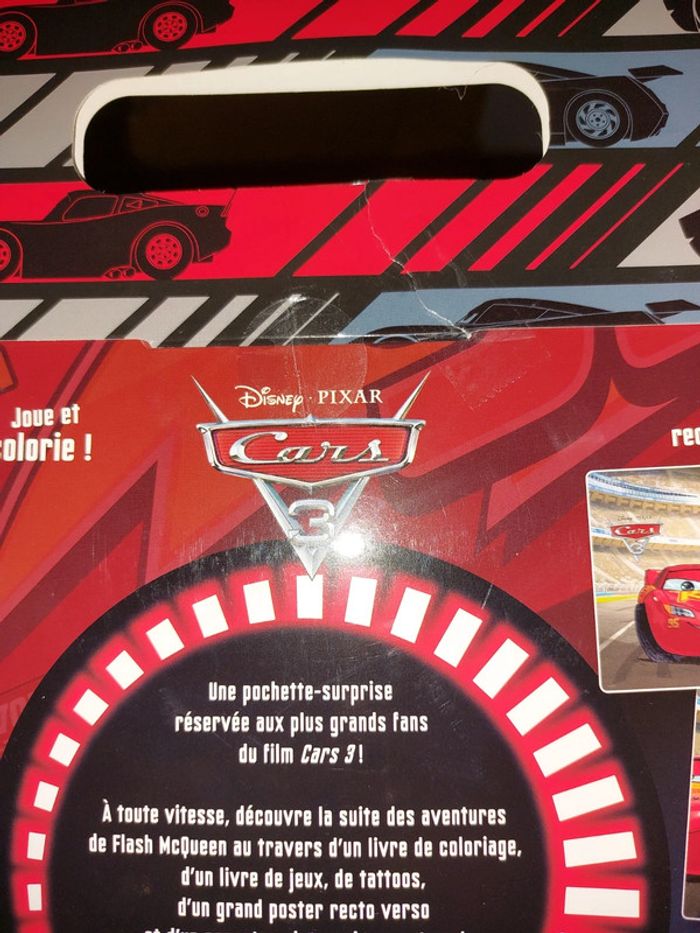 Lot de 2 magazines et pochette Cars avec jeux coloriages et poster neufs